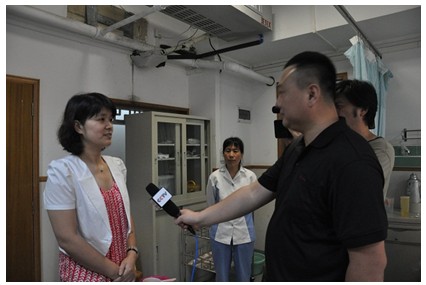 正在醫(yī)院進(jìn)行采訪的中央電視臺記者獲知完達(dá)山為五胞胎家庭解決寶寶們?nèi)甑目诩Z,現(xiàn)場采訪了王榮霞。