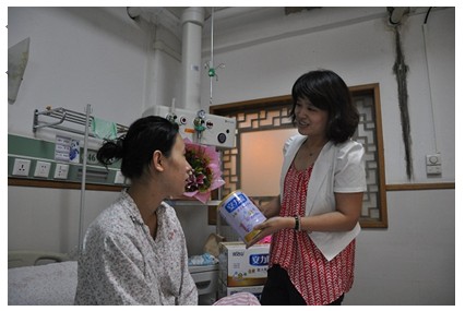 王榮霞指著手中的奶粉說,“中山大學(xué)對喝安力聰奶粉的孩子與母乳喂養(yǎng)的孩子做過身高、體重、毛發(fā)等方面的跟蹤、對比,結(jié)果證明這款奶粉非常接近母乳,可以放心地給孩子喝。他們是早產(chǎn)兒,又是多胞胎,只有這種更接近母乳的奶粉,才能給寶寶更好的呵護(hù)”她還拉著小妮的手說,“小家庭一下子添了這么多寶寶,是件高興的事兒,也給你們的生活增加了壓力,但是,社會上有這么多愛心人士和企業(yè)關(guān)注著你們,你們不用擔(dān)心,大家一定會幫助你們度過難關(guān)的。只要你們需要,完達(dá)山會免費為寶寶們提供三年的奶粉!