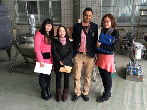 2015年2月3日,坦桑尼亞客戶需要采購一套牛奶生產(chǎn)線設(shè)備,來我公司與業(yè)務(wù)員和技術(shù)工程師進行具體需求的洽談,并參觀工廠進一步了解牛奶生產(chǎn)線的組成設(shè)備。下圖為業(yè)務(wù)員與客戶合影留念: